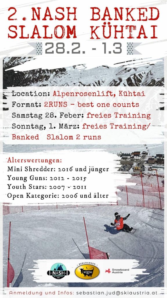 Sende uns deinen Snowboardclip an sebastian.jud@skiaustria.at, um eine Wildcard für das NASH Finale zu ergattern. Eine Jury wird aus den Einsendungen die besten Clips prämieren